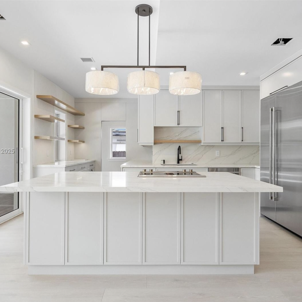 Luxuriously Remodeled Home in Prestigious Keystone Point. This stunning 4-bedroom, 3.5-bath home has been completely remodeled with a 1,000 sq. ft. addition. Offering modern luxury and impeccable craftsmanship. Dream kitchen with top-of-the-line appliances, including a wine cooler and extra beverage fridge. High-end finishes complement the vaulted ceilings in the bedrooms. The open floor plan seamlessly connects indoor and outdoor living, featuring a large, covered deck, a refurbished pool, and new landscaping and driveway. This smart home is equipped with integrated speakers inside and out, perfect for entertaining. A rare opportunity to own a turnkey residence in one of Miami’s most sought-after waterfront communities.