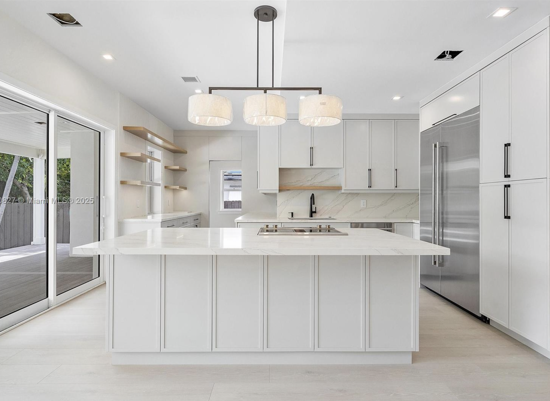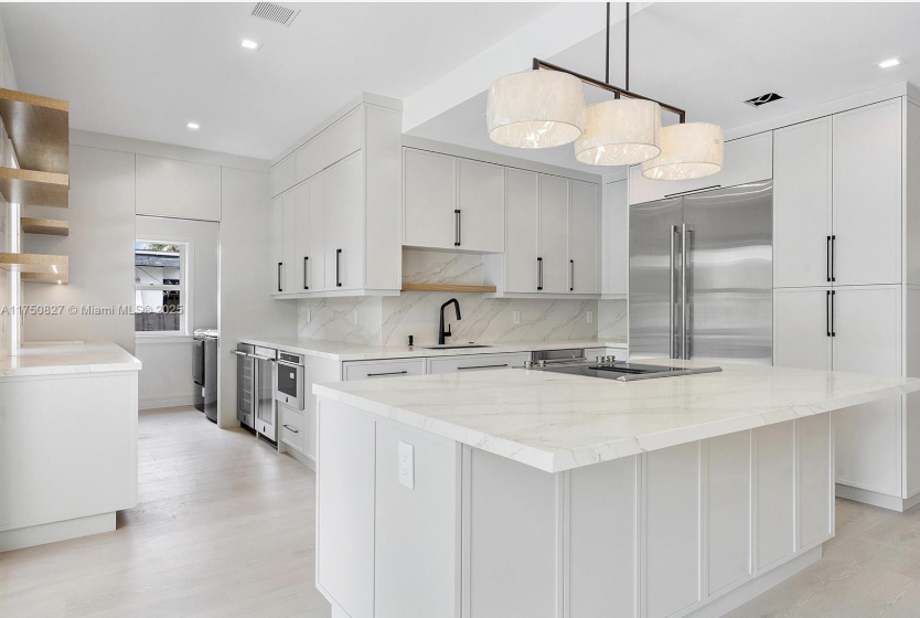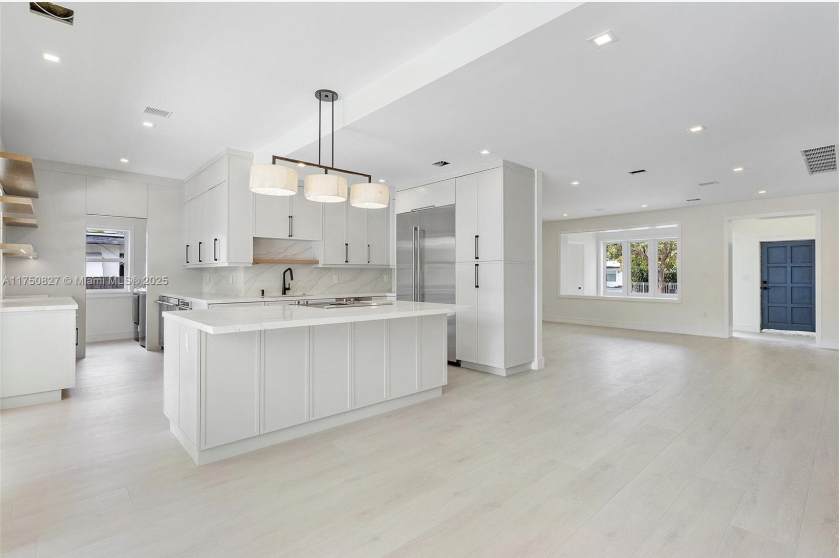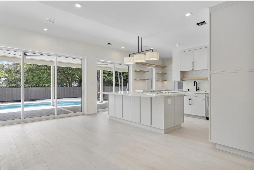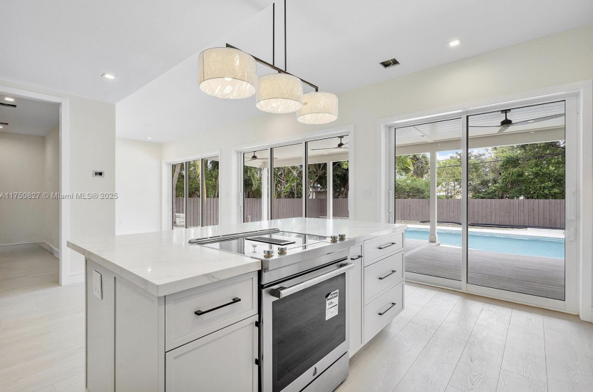 Luxuriously Remodeled Home in Prestigious Keystone Point. This stunning 4-bedroom, 3.5-bath home has been completely remodeled with a 1,000 sq. ft. addition. Offering modern luxury and impeccable craftsmanship. Dream kitchen with top-of-the-line appliances, including a wine cooler and extra beverage fridge. High-end finishes complement the vaulted ceilings in the bedrooms. The open floor plan seamlessly connects indoor and outdoor living, featuring a large, covered deck, a refurbished pool, and new landscaping and driveway. This smart home is equipped with integrated speakers inside and out, perfect for entertaining. A rare opportunity to own a turnkey residence in one of Miami’s most sought-after waterfront communities.