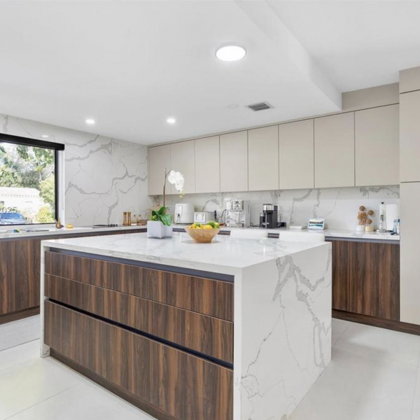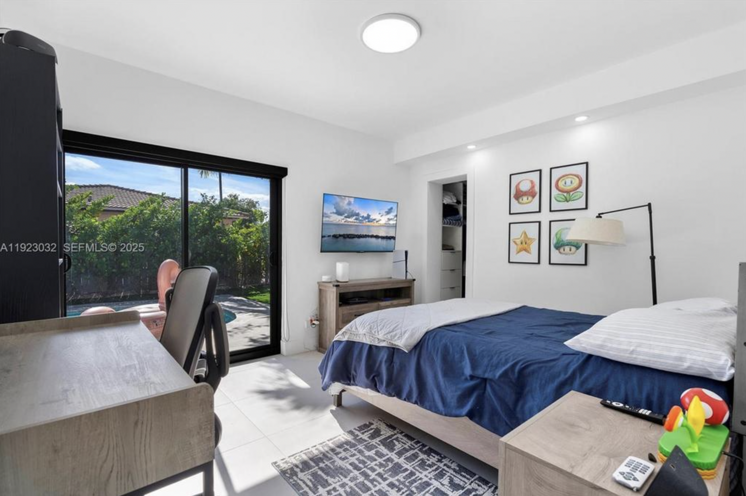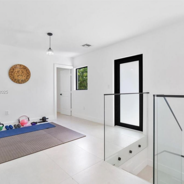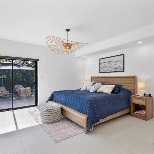 The main-floor primary suite includes a spa-like bathroom and generous walk-in closets, while the home’s five bedrooms feature large, comfortable layouts ideal for family and guests. A beautifully modernized Art Deco aesthetic flows throughout, highlighted by charming architectural details—including a Juliet balcony that adds character and charm.